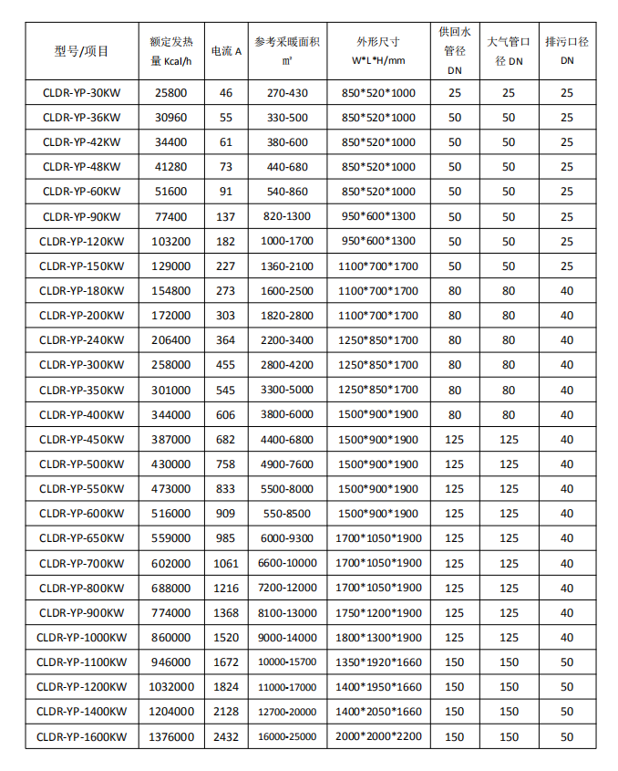 9.工作壓力;常壓(開放式)。如承壓系統,只需在系統上配置板式換熱器即可實現鍋爐的常壓安全運行。
